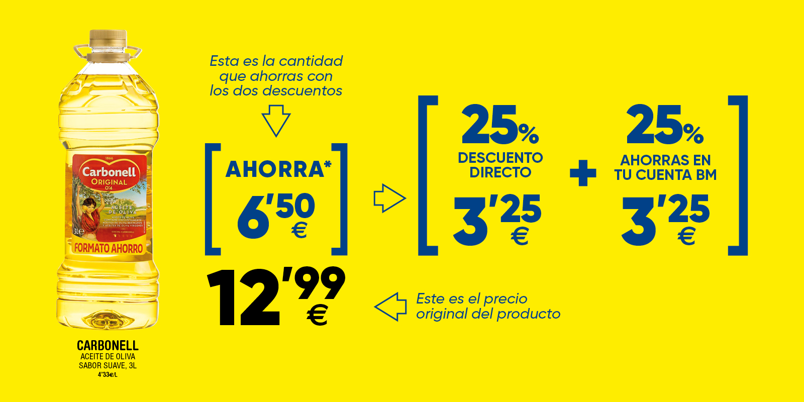 - Un 25% del precio te lo descontamos directamente al pasar por caja. En el supermercado encontrarás el producto con el 25% YA REBAJADO.