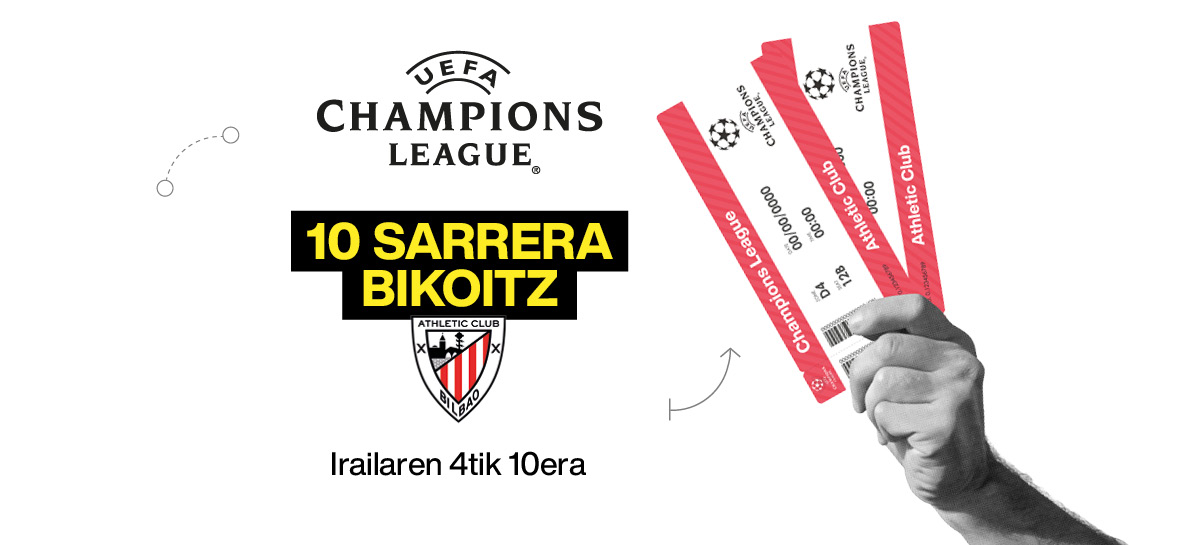 10 sarrera bikoitz zozketatzen ditugu Athleticek San Mamesen jokatuko duen Championseko lehen partidurako. Zozketa irailaren 12an egingo da, eta irabazleekin telefonoz jarriko gara harremanetan.